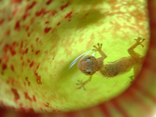 Bunga tanaman Nepethes robcantleyi sedang mencerna cicak
